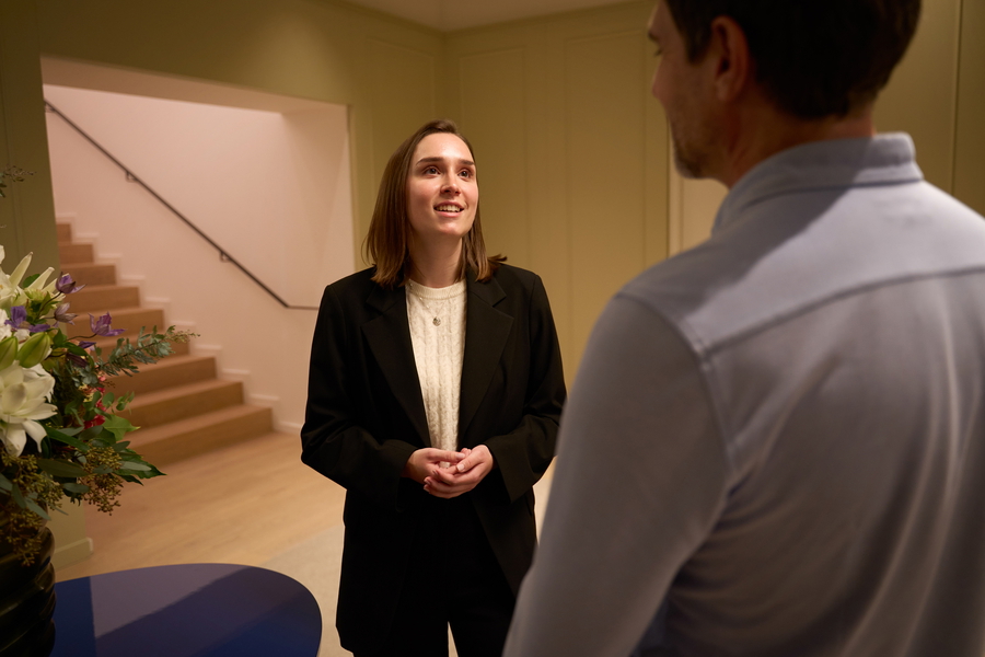 Historische Elemente sind bewusst auf das Foyer beschränkt. Die Klinikbereiche selbst sind vollständig neu und modern gestaltet. Großzügige Proportionen, ein abgestimmtes Farb- und Materialkonzept und die geschützte Innenhoflage schaffen ein Ambiente, das an ein exklusives Boutique-Hotel erinnert – ruhig, hochwertig und selbstverständlich.